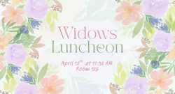 Join us Saturday, April 18 at 11:30 AM in Room 126 for a special time of fellowship and encouragement at our Widows Luncheon.