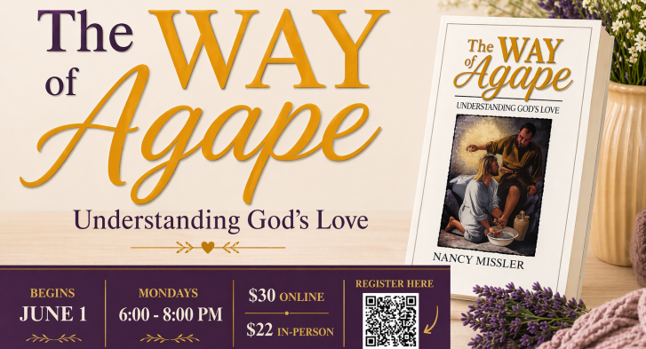 Join us for a 5-week Women’s Book Study on The Way of Agape by Chuck Missler and Nancy Missler. Grow in understanding God’s unconditional love and how to live it out through grace, forgiveness, and da...