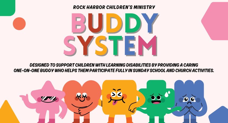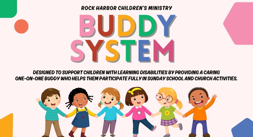 We are in the planning stages of launching a Buddy System in our Children’s Ministry to help ensure that children with physical, developmental, or learning disabilities can fully participate in Sunday School and church activities. Each child would be paired with a caring volunteer buddy who provides support during the class period. Our heart is to create a place of inclusion, safety, and spiritual growth for every child. If you might be interested in serving as a buddy in this ministry, please contact Crystal Montoya a cmontoya@rockharborchurch.net to learn more.