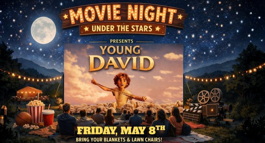 Join us for a fun evening on the RHC lawn as Children’s Ministry hosts a showing of Young David on Friday, May 8th from 7:00–9:30 PM. Enjoy games and fellowship from 7:00–8:00 PM, with the movie starting at 8:00 PM. Popcorn and drinks will be provided. Bring blankets and chairs and come enjoy a great night with family and friends.