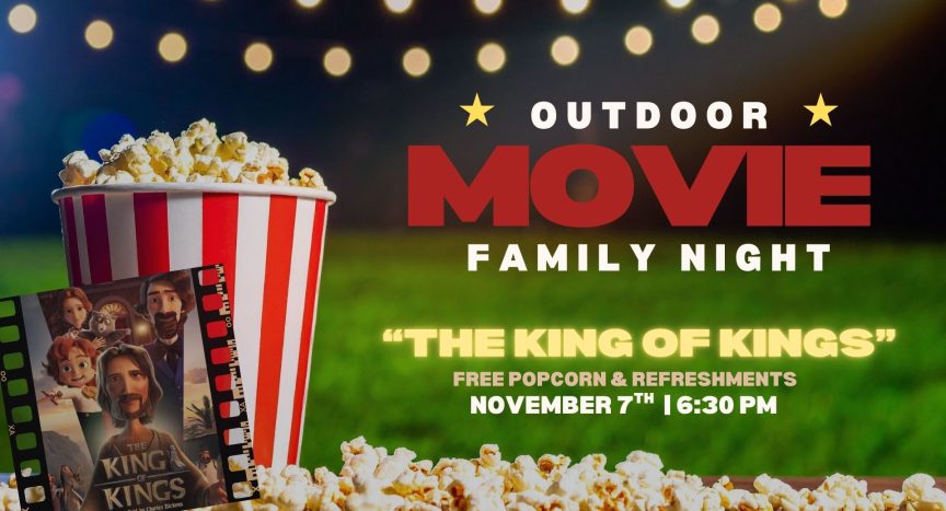 Join us for a special outdoor movie night hosted by the Children’s Ministry! We’ll be showing The King of Kings under the stars — bring your family, chairs, and blankets for a fun evening together.