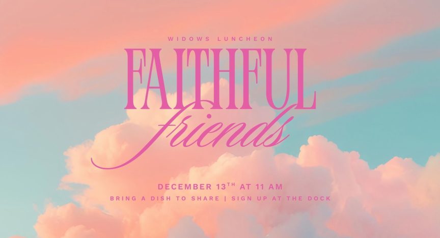 All widows are invited to join us for a time of fellowship at our Faithful Friends Luncheon on Saturday, December 13th, from 11:30 AM–1:30 PM. Please bring a dish to share and sign up at The Dock if you plan on attending!